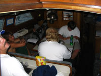 | We met as usual on Friday night to stow the food and prepare the boats for the weekend. Christian and Stephen reviewed parts of the boat, then all were in bed by 11:00 pm. | ||