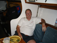 | After we launched the dinghy and made an initial shore run we relaxed and enojyed our BBQ Beef Sandwiches around 1:30 pm. | ||